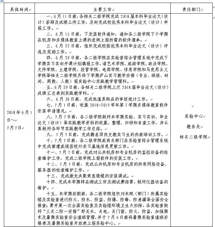 2017~2018学年第二学期期末和2018~2019学年第一学期期初实验室与实践教学工作安排