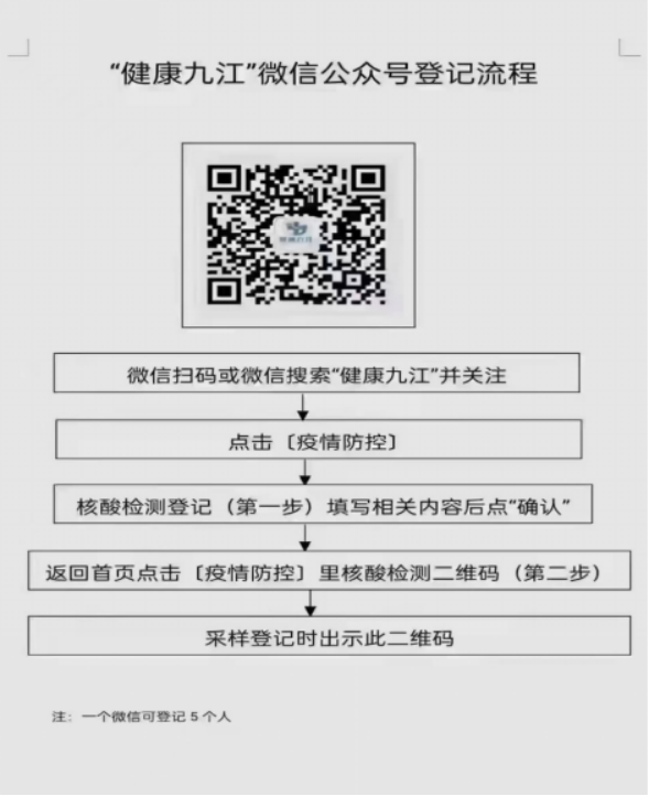 5、使用健康九江公众号扫码登记。提前准备好健康九江二维码有序采样。