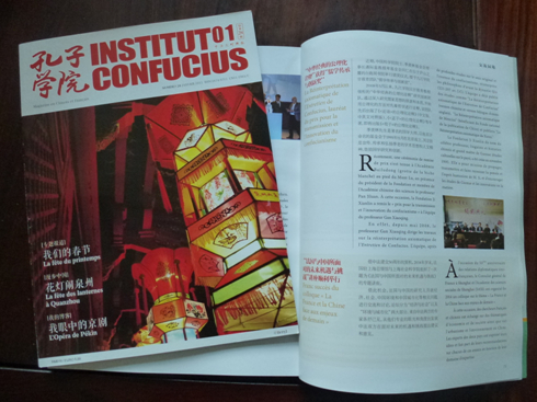 由孔子学院总部/国家汉办主办的全球《孔子学院》杂志(中法文对照版),在2015年第一期(总第28期)刊登报道:“中华经典的公理化诠释”获得“儒学传承与创新奖”(La Reinterpretation axiomatique de l’Entretien de Confucius,laureat du prix pour la transmission et l’innovation du confucianisme)。全文如下:
