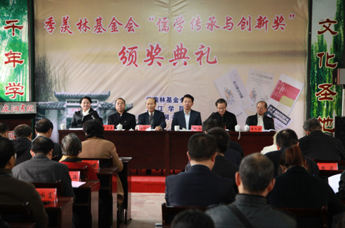 Recemment, une ceremonie de remise de prix s’est tenue a l’Academie Bailudong (grotte de biche blanche) au pied du Mont Lu,en presence du president de la Fondation et membre de l ‘Academie chinoise des sciences le professeur Pan Jiluan.A cette occation, la Fondation Ji Xianlin a remis le <prix pour la transmission et l’innovation du confuciannisme> a l’equipe du professeur Gan Xiaoqing.