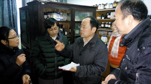 纪副校长一行首先检查了药品保管室,详细查看了药品室卫生、药品保存情况和出入库账目,对中心现有有毒化学品开箱称验,并查看使用和检查记录。随后纪副校长一行又来到无机化学实验室,对实验室硫酸等危险品的使用保管情况进行了检看,同时对学生实验情况进行了检查。
