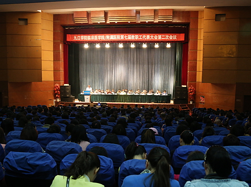 4月11日上午,临床医学院在庐峰校区大礼堂隆重召开第七届教职工代表大会第二次会议。副校长吴桃娥、工会主席金葆金莅临大会,临床医学院班子、各科室职工代表、列席代表、教职工、学生代表等1000余人参加了大会。会议由临床医学院党委书记张南华主持。