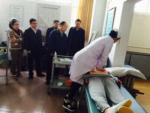 随后一行数人来到健康评估实验室,详细询问了此次实验教学的具体内容,并且与正在练习的学生进行了亲切交谈。