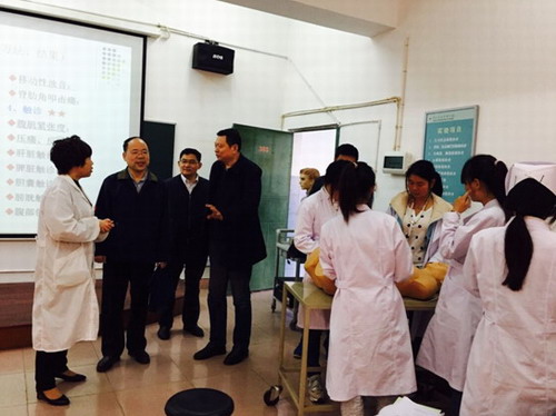 在整个调研过程中,纪副校长一再强调护理实验室一定要保证干净、整洁和舒适的环境,因为我们培养出来的学生以后都是从事救死扶伤的工作,是与人类的健康息息相关的。