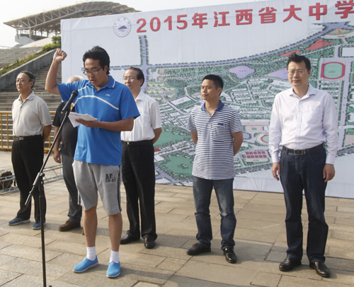 陶春元副校长在致辞中代表学校向莅临大赛的各位领导、全体运动员、教练员、裁判员和各位来宾表示最热烈的欢迎。向本届锦标赛的成功举办表示最热烈的祝贺。他指出,2015年江西省定向运动锦标赛在九江学院举行,必将对促进学校素质教育、发展定向运动产生十分深远的影响。学校将以尽心、尽力、尽责为承办宗旨,努力做好各项工作。我们将借此契机认真学习兄弟院校的好经验,改进不足,摸索出定向运动教学的新模式,为江西大中学生定向运动的建设与发展做出自己的积极贡献。