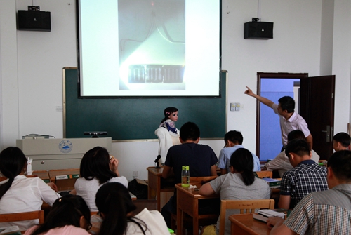 课堂上,创新空间的发起人张广顺老师和机器人“小美”一起为学生和机器人爱好者讲课。当日讲授的主要内容是:太阳能发电、自制光控灯等。机器人“小美”在操作人员的遥控和语音指令下,运用语音和肢体动作引导大家观看课件PPT内容,它像一位老师一样在台上讲课,张老师则在台下辅导学生。可以看到,在课堂上,机器人“小美”只是张老师的一个“分身”,它的主要职责是讲解一些基本的理论知识。“小美”的研发大大提高了老师的上课效率,但不足的是,它不能针对某个问题去解答学生的疑惑。对此,张老师表示,接下来,他和团队还将对“小美”进行改造升级。使用机器人参与课堂教学在江西尚属首例。张老师说,当初运用机器人讲课主要目的是,调动学生自主性学习,更好地激发他们的学习兴趣。下一步他们希望将机器人投入到更广泛的应用中。