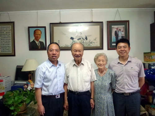 上午,甘校长一行到清华大学拜访了中科院院士、我校学术委员会主任潘际銮教授、清华大学资深教授萧树铁先生、清华大学国家人文素质教育基地程钢教授等。座谈中,甘校长汇报了学校近期在“三严三实”专题教育、内涵建设、庐山文化传承与传播协同创新等学术研究方面所开展的工作,并汇报了我校围绕抗日战争及世界反法西斯战争胜利70周年,将举行以爱国主义为主题的系列纪念活动情况。潘院士为学校的发展及成绩感到高兴,并讲述了自己目睹日寇侵华罪行、立志报国攻读西南联大的人生经历;尚在手术后康复中的萧树铁先生,一直关注和指导我校“中华经典的公理化诠释”研究团队的工作,鼓励团队成员再接再厉,严谨治学,攀登新的学术高峰;程钢教授等专家计划于8月中旬来校,参加庐山文化研究中心组织的《<老子>的公理化诠释》暑期研讨班。
