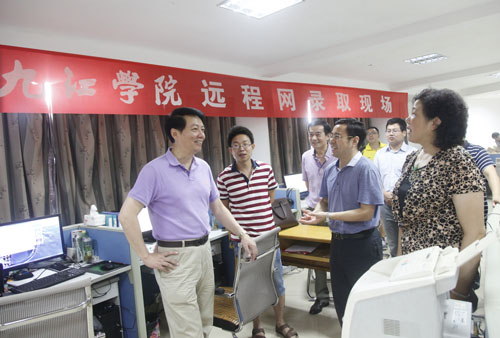 在远程网录取现场,郑翔书记听取了招生与就业处肖国丰处长关于招生情况的汇报,了解了目前的工作进程,并饶有兴致地观看了工作人员的实际操作。截至目前,除山西、云南、福建三省的本科录取尚在进行之中外,我校在其他省份的本科录取工作已基本结束,下一步将进行专科的录取工作。