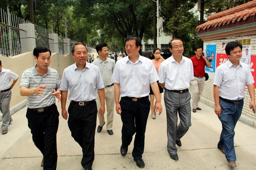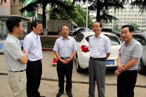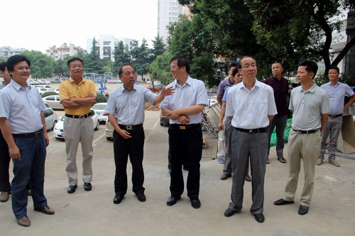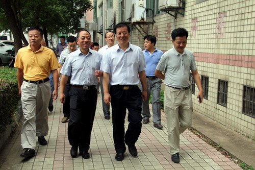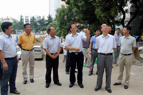 9月16日上午,刚刚在浔东校区参加完2015级新生开学典礼的甘筱青校长,陶春元副校长,杨焱林副校长来到庐峰校区,就庐峰校区的环境及教学楼改造项目进行祥细的实地视察。国资处、实验中心、医学部、临床医学院负责人陪同检查。