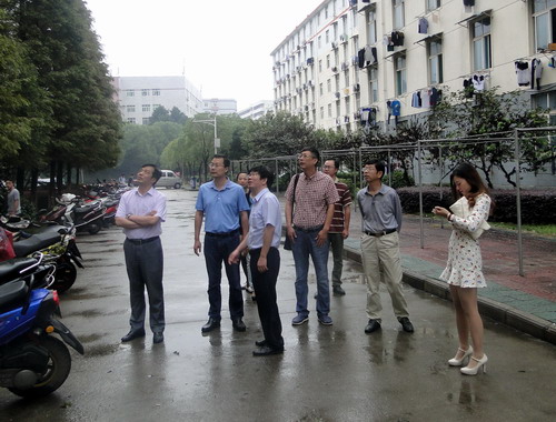 王副校长一行又来到浔东校区东一栋和东三栋教工宿舍处察看,发现教工宿舍东一栋和东三栋之间的树枝已伸进教师家里,影响教师房屋的采光和居住安全。随后又来到浔东校区教工宿舍西五栋和西七栋察看,发现同样有树木影响教师房屋采光,还有一颗树枝折断砸伤了老师房屋。他希望学校基建部门和浔东校区管理办联合对这些树枝进行截枝和砍伐,切实维护老师的居住安全。