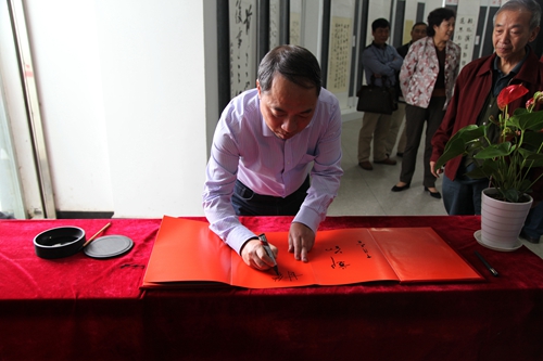 金秋流彩,丹桂飘香。10月9日上午,由校党委宣传部、校工会、离退休职工管理处、艺术学院、老年文学艺术协会联合举办的“纪念抗战胜利七十周年暨国庆六十六周年教职工书画摄影展”在逸夫楼图书馆一楼展览厅正式开展。校领导郑翔、甘筱青、吴桃娥、王万山、魏立平、杨耀防来到展厅,欣赏和观摩教职工的书画摄影优秀作品。
