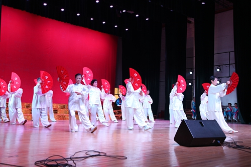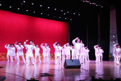 随后,文艺汇演在极具民族特色的《武当太极剑》表演和气势蓬勃的大合唱《在太行山上》《团结就是力量》中拉开帷幕。朗诵《我深爱着我的祖国》,道出了老同志对伟大祖国的心声。20多位气宇轩昂、婀娜多姿的老年模特一出场就嗨翻全场,将演出推向高潮。在热情洋溢的民间腰鼓表演和柔和唯美的舞蹈《中国美》中汇演圆满结束。