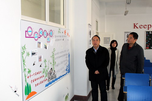 甘校长还到外国语学院教室,饶有兴致地观看教室的文化墙,赞许将创业创新教育、好习惯养成、国学素养教育有机融合,形成一种校园文化导向的做法,提议有条件要推广。