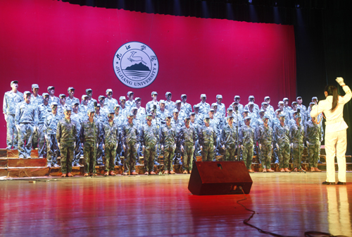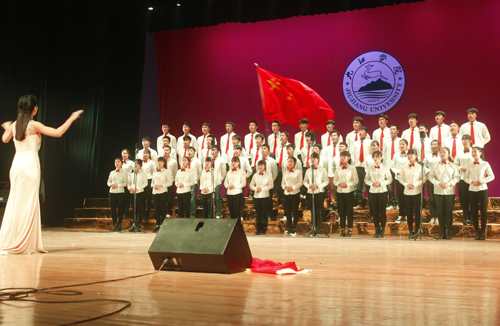 12月9日晚,我校大礼堂歌声嘹亮,座无虚席,以“同抒九院情,共筑中国梦”为主题的纪念“一二·九”运动80周年合唱比赛暨国学经典诵读表演在这里隆重上演。来自全校十余个学院的代表队在这里以歌唱、诵读的形式铭记历史,品味经典。校领导郑翔、纪岗昌、王万山、魏立平、杨耀防与千余名师生代表共同观看了演出。