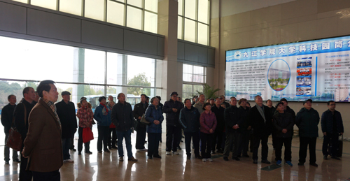 会后,郑翔、吴桃娥陪同离退休老同志、党外人士来到大学科技园,观看了介绍大学科技园的专题片,并兴致勃勃地参观了科技园入园企业。