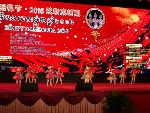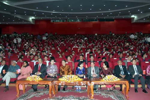1月21日晚,柬埔寨金边钻石岛歌剧院人头攒动,喜气洋洋,柬各界人士汇聚于此,共同欣赏“欢乐春节•2016欢动柬埔寨”文艺演出,提前感受中国春节的喜庆气氛。“欢乐春节•2016欢动柬埔寨”文艺演出由中国文化部和中国驻柬大使馆主办,柬文化与艺术部和柬国家电视台协办。中国驻柬大使布建国、柬副总理兼总理府部长索安(SOK An)、副总理兼外交国际合作部部长贺南丰(Hor Namhong) 、柬王室成员、政府官员、华侨华人代表及孔子学院师生等约3000人在现场观看了演出。