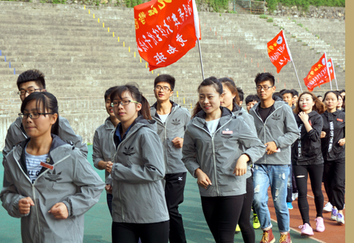 启动仪式结束后,在副校长王万山的领跑下,举行了“徒步长征第一步”:环校2.5公里跑步活动。