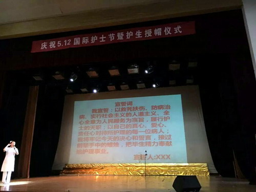 为弘扬南丁格尔救死扶伤的人道主义精神和为护理事业无私奉献的高尚品质,充分激发护理学院同学毕业后全心全意为人民服务的工作热情,5月8日下午,在学院师生近两个多月的精心准备下,一场别开生面的庆祝5.12国际护士节授帽仪式暨文艺汇演在浔东大礼堂隆重上演。副校长杨耀防、九江市护理协会理事长陈锐应邀出席了庆祝活动;浔东管委办主任杨晓宁、副主任周学英,基础医学院党委书记余朝阳、临床医学院党委书记张南华及九江市各大医院护理部主任与护理学院全体师生共一千余人参加了授帽仪式,仪式由护理学院院长王绍锋主持。