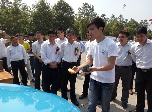产学研齐合作,创新创业育人才。6月4日至5日,九江学院首届汽车科技文化展暨校园车展在北区田径场顺利举行,本次活动为期两天。4日上午9:00举行了活动开幕式,九江学院副校长王万山,九江市政府副秘书长宋志龙,江西昌河汽车有限责任公司副总经理方群飞,共青团九江市委副书记周辉红,江西省交通流通协会常务副会长章新挺,九江知行汽车服务有限公司董事长黄继华,九江学院科研处处长王侃民,保卫处处长张晓明,实验中心主任方向明,团委书记闫来英,宣传部副部长陈晓松,机材学院院长张德勤,机材学院党委副书记陈胜才等领导出席了本次活动。此外,参加本次活动的还有各大媒体和来自各企业的来宾,以及来自九江学院宣传部、党委、大学科技园的领导和机材学院的师生代表。