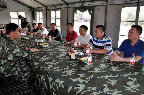 武警二总队副政委熊壮中和政治部副主任张宗金热情接待了民盟慰问团一行。他们介绍了当前九江抗洪救灾的严峻形势和艰巨任务,讲解了多个军民联合抗洪感人故事,并表示对打赢抗洪抢险这场战争充满信心,对我们浓浓的军民鱼水情表达了深深的谢意。