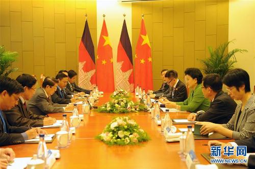 7月31日,国务院副总理刘延东在贵阳会见来华出席第九届中国-东盟教育交流周的柬埔寨副首相兼内阁大臣索安。(新华社记者陶亮 摄)