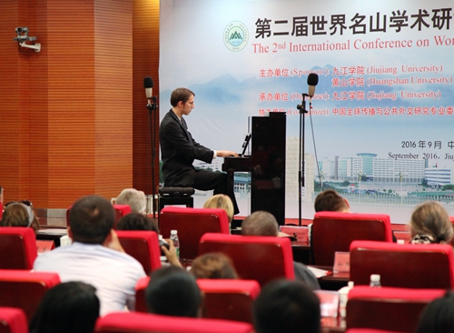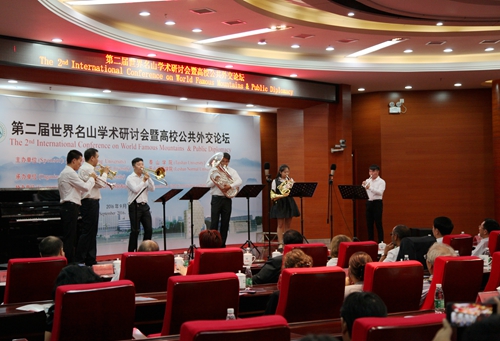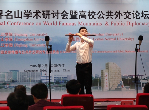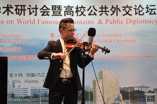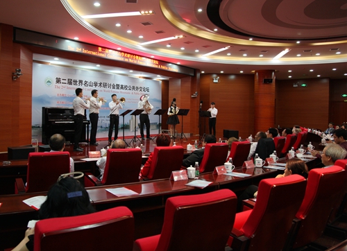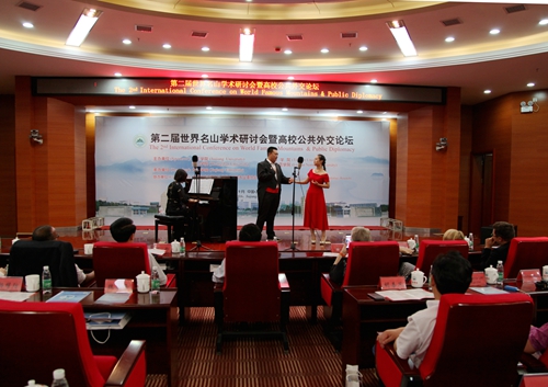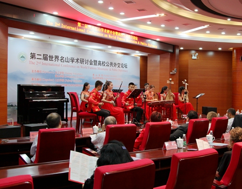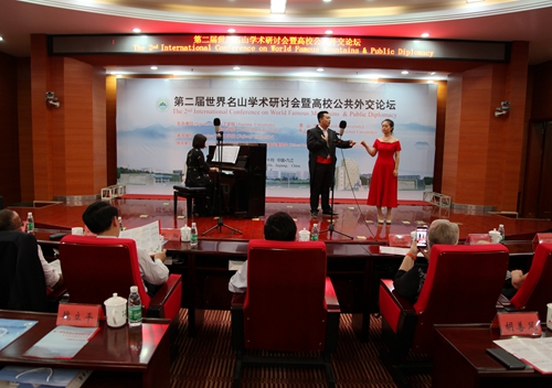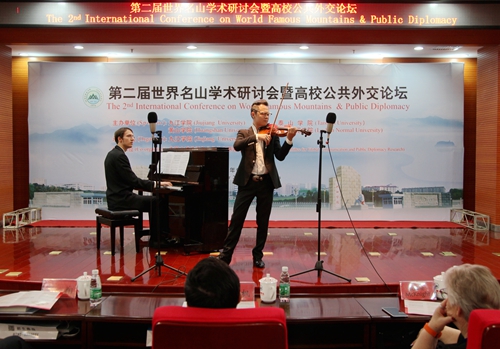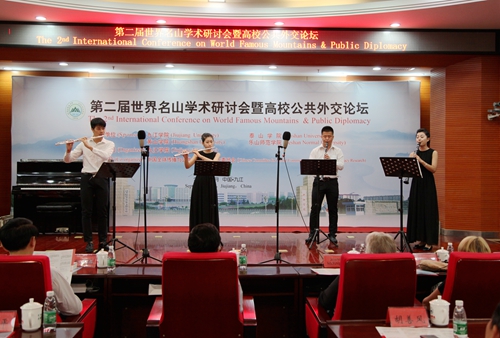 9月19日晚,我校艺术学院师生在逸夫楼图书馆学术报告厅举办小型音乐会。出席第二届世界名山学术研讨会暨高校共公外交论坛的中外嘉宾、媒体记者,我校党委书记郑翔、副校长杨耀防等校领导,以及相关部门负责人和部分师生一起欣赏了艺术学院师生们精心准备的音乐会节目。