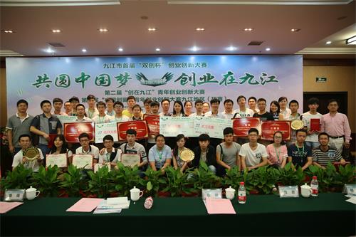 九江市比赛名称为九江市首届“双创杯”创业创新大赛暨第二届 “创在九江”青年创业创新大赛和第二届“中国创翼”青年创业创新大赛(初赛)”,由市人社局承办并组织省赛和国赛。我校大学科技园选送了25个项目参加九江市初赛,一等奖2项(共4项),二等奖3项(共8项),三等奖4项(共10项),优秀奖16项(共50项),并获得了“优秀组织奖”;由市人社局推荐9项参加第二届“中国创翼”青年创业创新大赛江西省复赛,我校《硬币包装机》、《智能生态油炸机》、《江西资生科技有限公司》、《商品智能存取传送装置》等5项被选送参赛,其中《硬币包装机》获得全省第9名;由省人社局推荐的九江市6项参加第二届“中国创翼”青年创业创新大赛决赛,我校《微振科技研发公司》、《硬币包装机》、《智能生态油炸机》等3项项目,《微振科技研发公司》是唯一进入总决赛并获得第8名的好成绩。