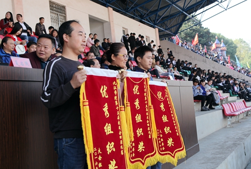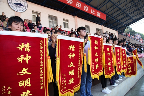 经过两天半的激烈角逐,在圆满完成了所有比赛项目后,九江学院第十五届运动会于11月5日上午10:30胜利闭幕。副校长纪岗昌、陶春元、杨焱林、夏启国等校领导和相关部门负责人出席了闭幕式,并为获得精神文明奖,教工优秀组织奖,和田径、团体总分奖的单位颁奖。闭幕式由杨焱林副校长主持。