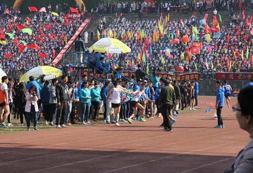 本届运动会,全体师生展示了良好的运动水平和高尚的体育道德,增强了我校师生的凝聚力、向心力。本届运动会共有19支代表队进行了23 个单项的比赛,共有一人次一队次打破了两项校运会记录,创造了优异的成绩,推进着我校体育事业更上一层楼。
