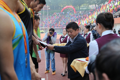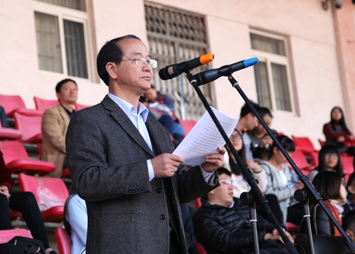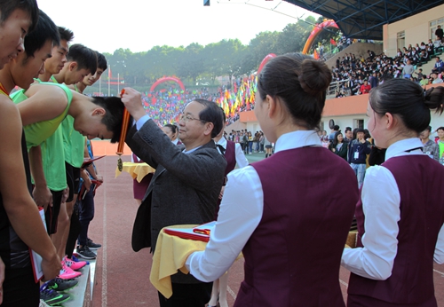 副校长陶春元致闭幕词,他首先代表学校向取得优异成绩的运动员和代表队表示祝贺,向支持本次运动会的全体学生,教职工表示感谢。陶副校长说,本届运动会是一次成功的体育盛事,是对学校体育工作的一次检阅,体现了我校师生团结奋进的精神风貌,展示了团结拼搏的体育精神。陶副校长希望全校师生以本次运动会为契机,进一步推进我校教学、科研、管理、服务等各项事业的持续健康快速发展,为把我校建设成为特色鲜明的高水平地方综合性应用型大学做出更大贡献。