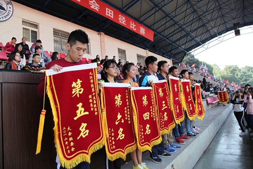 闭幕式上,运动会组委会委员、校团委书记闫来英、体育学院党委书记付和忠分别宣布了精神文明奖、教工优秀组织奖和田径比赛团体总分、校运会团体总分的获奖单位名单。外国语学院、信息学院、机材学员、化环学院、旅游学院、经管学院、会计学院、电商学院获得了精神文明奖;体育学院、土建学院、财务处分会获得教工优秀组织奖;土建学院、旅游与国土资源学院、机材学院、电商学院、经管学院、化环学院、外语学院、信息学院获得获得田径团体总分前八名;土建学院、经管学院、会计学院、电商学院、机材学院、外语学院、旅游与国土资源学院、信息学院获得第十五届校运会团体总分前八名。