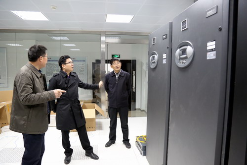 随后,梅龙宝教授陪同柬埔寨王家孔子学院院长谢莫尼勒阁下参观了网络中心机房、数据中心机房、校园一卡通中心机房、平安校园机房,了解学校网络运行和教学系统应用情况,谢莫尼勒院长对我校信息化建设给予高度评价。