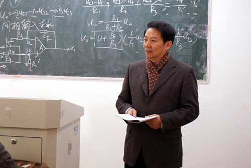 课堂上,朱亚军副教授首行与同学们回顾了上一节课的内容,之后讲授了反相、同相输入求和等知识点。
