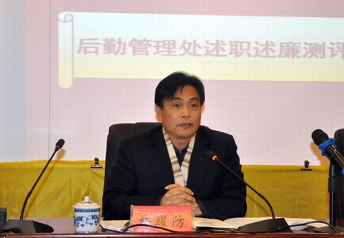 述职测评会结束后,后勤管理处召开党委班子民主生活会,杨耀防副校长在组织人事部组织员夏英同志的陪同下出席会议并讲话,会议由后勤管理处党委书记张红涛同志主持。
