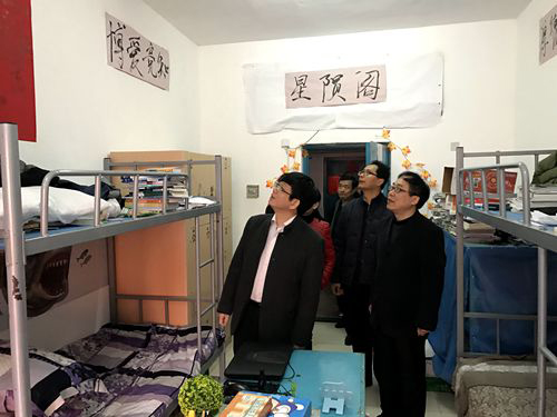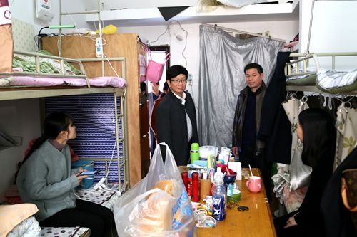 检查过程中,王万山副校长详细查看了宿舍楼整体卫生情况和各处卫生死角。对环境整洁的宿舍提出了表扬,对发现的问题及时指出,并要求有关学院立即整改。在检查的同时,王副校长与同学们亲切交谈,勉励他们养成及时清扫,保持宿舍整洁的好习惯。