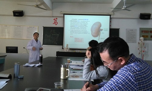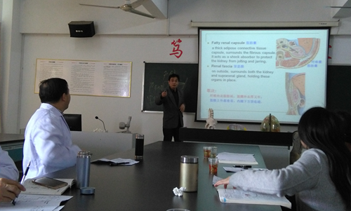 傅文学主任就泌尿系统的备课做了中心发言,在课时安排、教学大纲、重点和难点、教材、教学对象、教法和学法、课程导入以及融入德育教育等方面结合多媒体教学、临床病例和课程预习和回顾方面分享了自己的心得和经验。