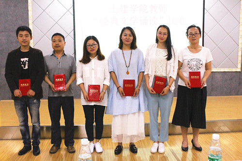 经过近三个小时的角逐,根据在场评委公平公正的评分,评出了一等奖2名,二等奖4名,三等奖6名。由学生科全体辅导员演绎的《我的告白书》和院办徐姝老师的《当你老了》获得一等奖。高斌老师的《长征组歌》、刘少武和项忠平的《沁园春.庐山》、刘梦和谢彬的《面朝大海,春暖花开英法朗诵》、王玲和甘金红老师的《窗前的青春》获得二等奖,佟煊老师朗诵的《船》、陈娟的《可爱的中国节选》、王峰的《小鸟在天空消失的日子》、夏禹和吴莉莹老师的《你是人间的四月天》、钟艳老师的《走出非洲》和施工教研室演绎的《面朝太阳》获得三等奖。本次活动取得圆满成功。