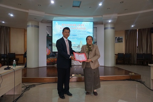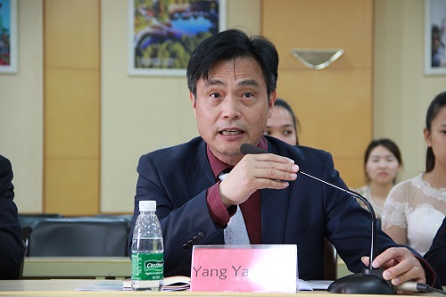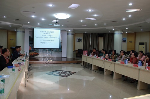 欢迎仪式后,杨耀防副校长做了题为“中国历史上的太平盛世”的精彩讲座,介绍了成康之治、文景之治、贞观之治和康乾盛世四个时期的经济、政治和文化,讲座内容详实丰富,语言深入浅出,诙谐幽默,赢得了观众的阵阵掌声,促进了柬埔寨官员对中华文化的了解。