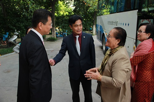 5月12日下午,学校在行政楼1号会议室举行了访华团欢迎仪式。校长刘晓东教授、副校长杨耀防教授、柬埔寨王家研究院院长克洛堤达(KHLOT THYDA)院士、国际交流学院负责人帅式毅、文传学院院长吴国富、旅游学院副院长孙冬英、柬埔寨王家研究院孔子学院官员班学员访华团全体成员、我校柬埔寨留学生共50余人参加了欢迎仪式。欢迎仪式由杨耀防副校长主持。