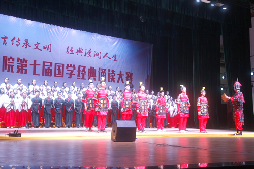 诗以言志,歌以壮行。在预赛中胜出的化环学院、文传学院、外国语学院等10支代表队,深情演绎了《春江花月夜》《红岩魂》《丝绸之路》等经典篇目。比赛中,选手们全身心投入,台上一边是同学们深情并茂的高声吟诵,一边是他们精心设计的舞蹈、歌唱、舞台剧,在声、光、电等现代技术的配合下,同学们用自己的方式诵国学、唱国学、演国学。同学们的精彩演出让大家感悟到了中华经典文化的魅力。比赛现场,来自柬埔寨的留学生们为大家奉献了《祈福舞》,他们的助演得到了大家的阵阵掌声。