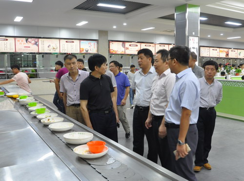 民以食为天,食以安为先,食品安全是事关人民群众生命安全和健康利益的民生大事。为全面了解食品安全现状,深入分析食品安全监管工作面临的问题,积极营造良好的食品安全环境,切实维护群众权益, 9月6日下午,九江市政协食品安全工作专题调研组来我校实地开展调研工作。调研组由九江市政协副主席严平带队,市食品药品监督管理局局长李广欣、市政协教文卫体委员会主任潘浔、市文广新局局长石峰、九江职业技术学院副院长刘南平等20余人参与调研。我校副校长夏启国代表学校热情接待接待调研组一行,后勤管理处处长姜东升、饮食服务中心主任蔡飞随同调研。