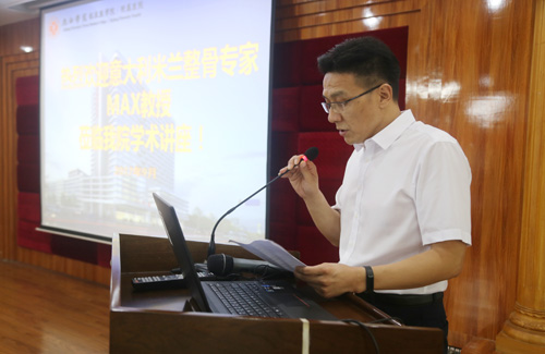 9月6日,临床医学院/附属医院邀请意大利米兰整骨专家Massimiliano Mancini(Max)教授来院开展学术交流讲座,主要讲授颈肩腰腿痛的米兰整骨治疗。刘晓东校长热情接见Max教授。张志平院长、胡志坚副院长、欧阳庆雯副院长及中医部全体医护人员参加了讲座。会议由康复医学科张国庆主任主持。