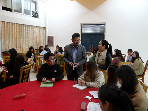 下午两点,刘校长与旅游B1611班的同学一起听取了李晓丹老师讲授的《饭店服务实训》课程。课后点评时,刘校长指出,随着国家经济形势的发展,旅游业的发展会越来越蓬勃。从事服务工作,最根本的是心中装着服务对象。具体的技能老师教得很好,希望同学们热爱自己的专业,今后,热爱自己的职业,在平凡的岗位上做出不平凡的贡献。