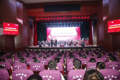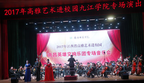 11月4日下午,2017年“高雅艺术进校园”南昌英雄交响乐团专场音乐会在我校大礼堂激情上演。乐团的艺术家们倾情出演,为我校师生奉献了一场精彩的音乐盛宴。学校校长刘晓东,党委副书记魏立平,副校长陈春生,豫章师范学院副校长张海涛与我校千余名师生共同欣赏了精彩演出。