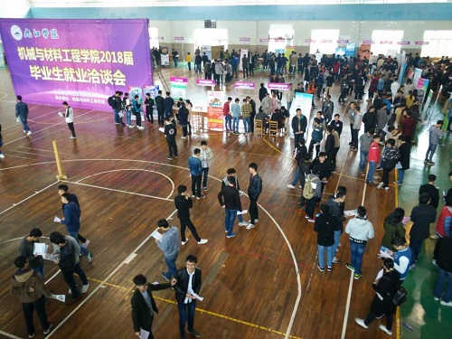 为充分搭建用人单位和毕业生互动双选平台,促进毕业生及时、高质量就业,11月19日,由招生与就业处主办、机械与材料工程学院承办的2018届毕业生就业洽谈会于我校南区体育训练馆隆重举行。本次招聘会邀请到了北京、上海、浙江、江苏、广东、福建、安徽、山东及江西等地的80余家企事业单位参加招聘,其中包括10家校友事企业,提供包括机械、材料、外语、物流、营销、会计、文秘办公、电商等近两千个就业实习岗位,吸引了我校各二级学院一千余名毕业生前来求职应聘。