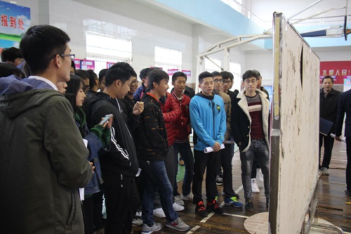 本次洽谈会呈现出领域宽、需求广、质量高等特点。每家企业展位前都挤满了咨询的同学,咨询的内容包括企业相关的市场形式、企业的用人规划等。有的同学主动向心仪单位投递简历,在面对面的沟通中了解用人单位的情况和薪酬条件、任职资格等具体要求;有的同学在面试官前侃侃而谈,充分展示自身的素质和专业能力。前来求职的机材学院A1413班欧阳胜芳同学说道:“非常感谢学校给我们毕业生提供了这么好的平台和机会,校领导也亲临现场给我们提点建议,的确是很大的鼓舞。本次洽谈会就像是一堂生动的就业指导课,重素质、重能力、重技能的用人标准,使我明确了奋斗目标,增强了学习动力。”