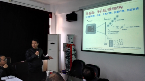 聂博士在化环学院会议室做了题为“活体质谱与成像”的学术报告。报告会由省工程中心副主任彭游博士主持,来自化环学院、理学院、电子学院、生命学院的30余位副高以上的教师听取报告。