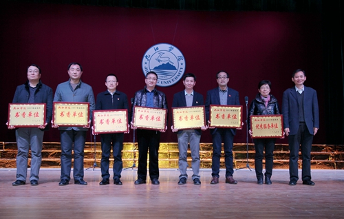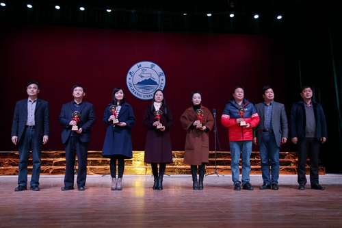 党的十九大做出中国特色社会主义进入新时代的历史判断。新时代,新思想;新征程,新使命。为了激励全校党员干部和师生员工不忘初心,牢记使命,永远奋斗,学校策划了以“学习贯彻十九大,书香共筑中国梦”为主题的读书月,包含主题讲座、交流分享、“四讲”活动、唱响中国梦大合唱等形式多样的读书学习活动。经过一个多月的系统推进,崇尚读书的好风气进一步形成,涌现出了一批书香之星、书香寝室和书香单位。经申报评选,外国语学院、旅游与国土资源学院、政法学院、信息学院、会计学院、电子商务学院获得书香单位称号,图书馆获得读书月优秀服务单位称号。与会领导为获奖单位和合唱获奖代表队颁发了奖牌。
