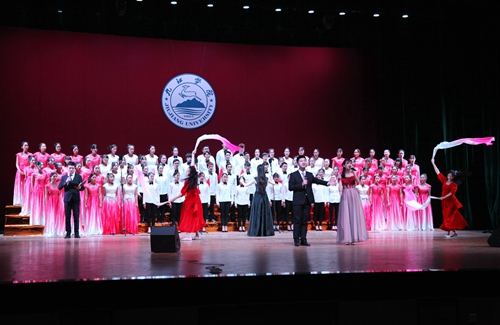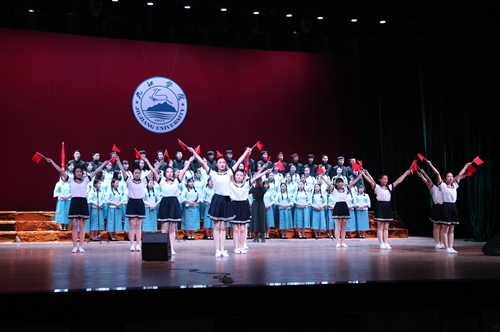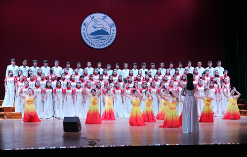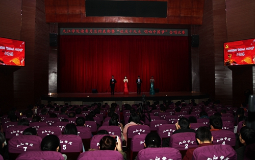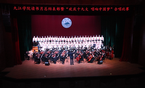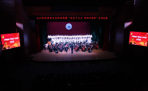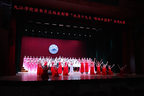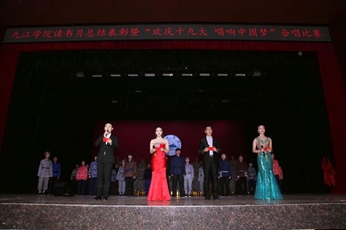 诵词铿锵,风华正茂,红歌奏响,神采飞扬。12月6日晚,九江学院读书月总结表彰暨“欢庆十九大,唱响中国梦”合唱比赛在大礼堂举行。校领导赵伟、刘晓东、魏立平、王万山、陈春生、杨耀防、夏启国来到现场,与1000余名师生共同为比赛加油助威,通过文艺观摩的方式,进一步强化“不忘初心、牢记使命”的精神信仰,把深入学习贯彻党的十九大精神推向新的高潮。