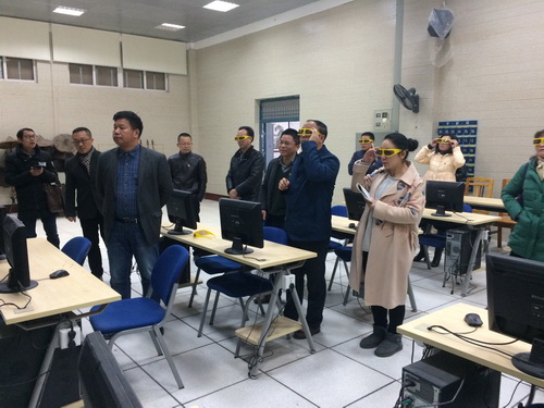 陈副校长和黄晓全教授亲自带队,会计学院张国伟副院长陪同,认真查看了学院实验室场地,在查看场地过程中陈副校长抽查了学生实习报告,机房上课登记记录本。黄教授指出学院要结合专业特点,机房和试验场地的介绍和布置工作可以进一步细化。